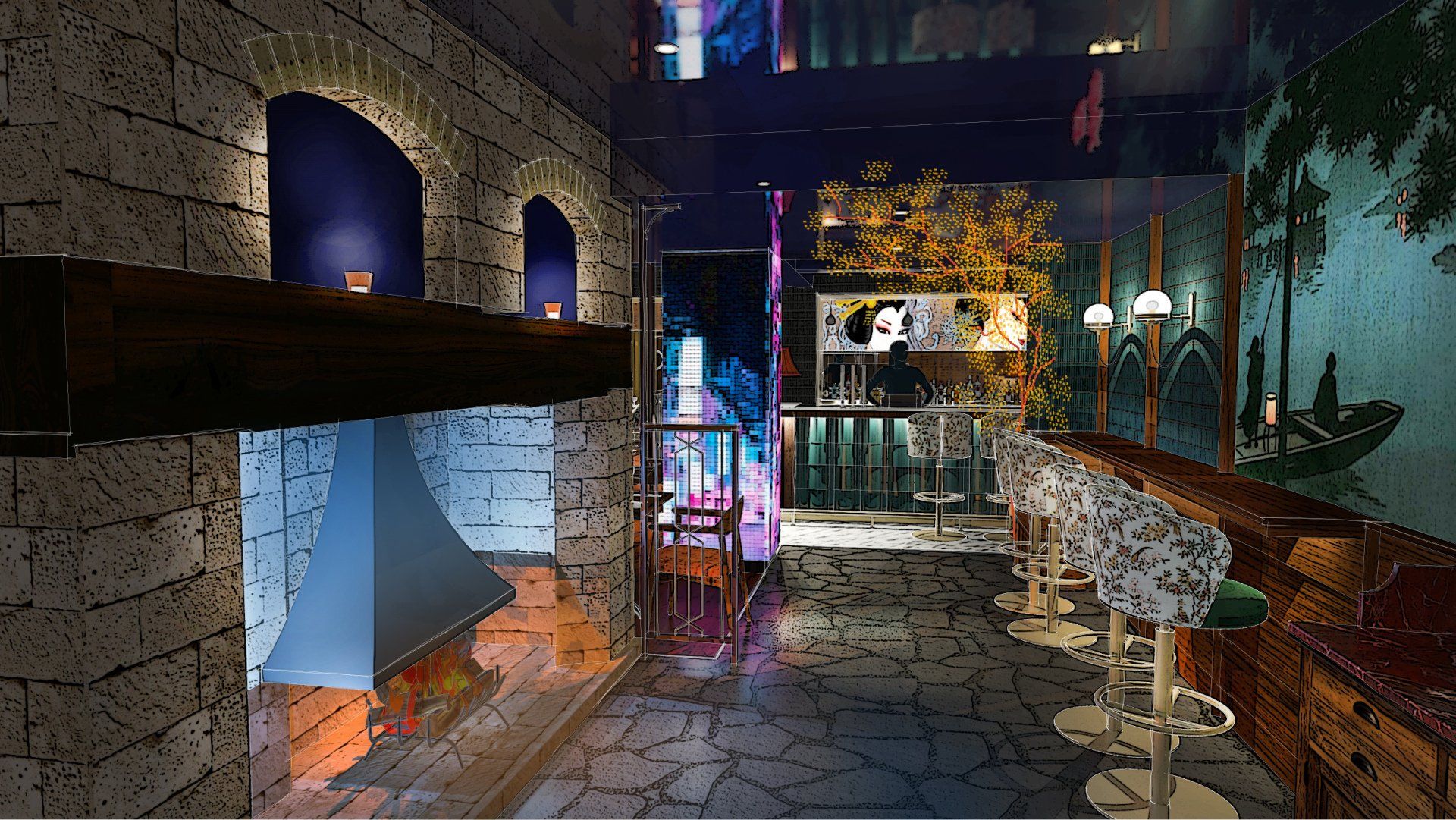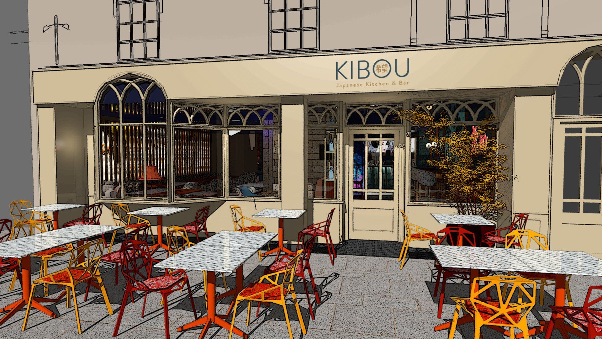 Q&A Interior Designers were commissioned to design the new KIBOU Solihull site after successfully designing and managing their KIBOU Cheltenham Restaurant & Kibou Clifton Restaurant.