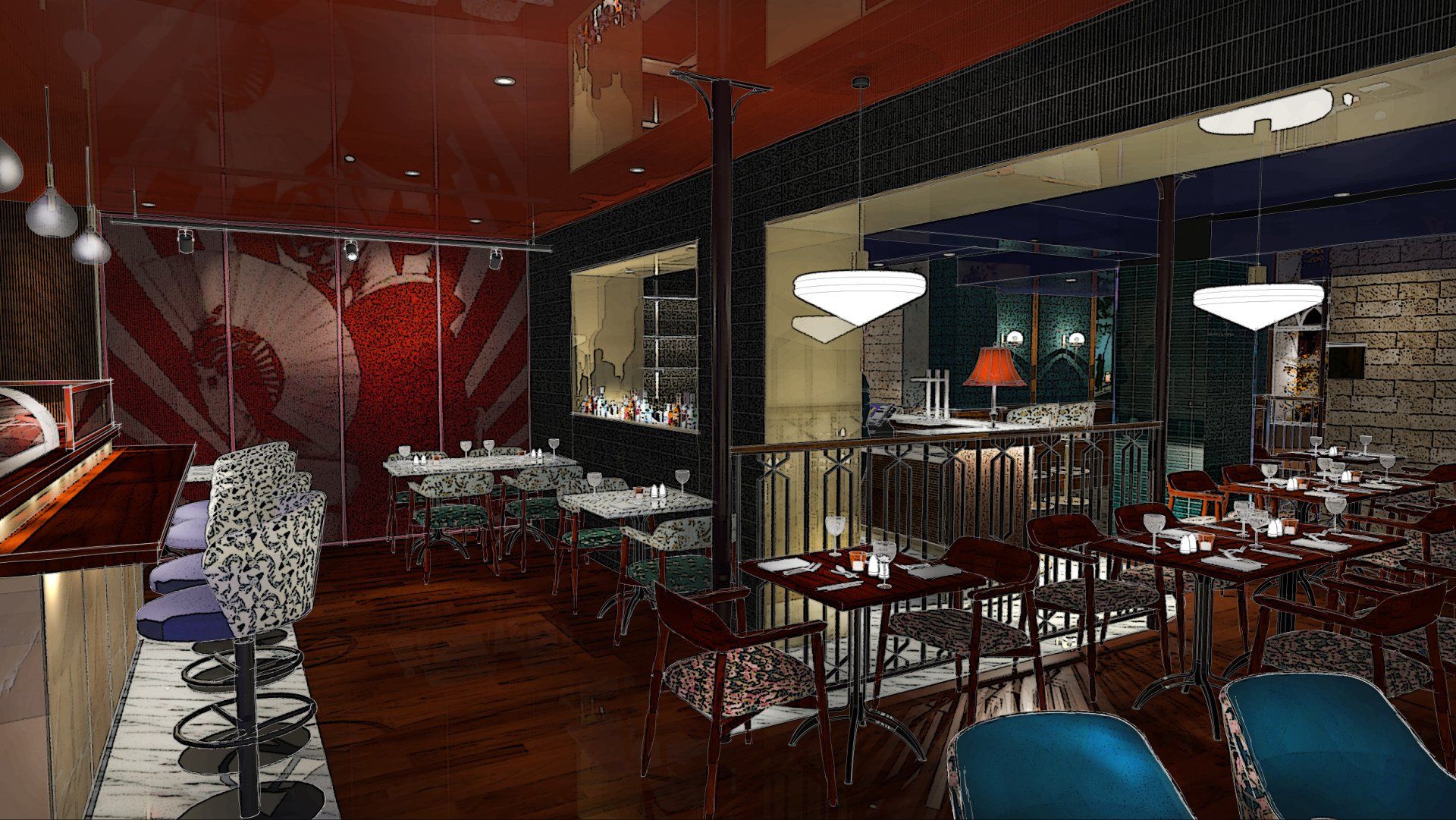 Although clearly the brief was completely different for these venues, they interpreted our design requirement for an informal restaurant that combined seamlessly with a smart cocktail / drinking atmosphere.”
